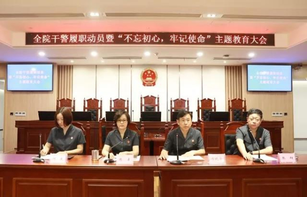 6月28日上午,江宁开发区法院召开全院干警履职动员暨“不忘初心,牢记使命”主题教育大会。会议由副院长冯晓华主持,全院干警参加。会上,院分党组书记、院长陈晨强调,江宁开发区法院如何依法履职,“不忘初心,牢记使命”主题教育的目标和任务给我们指引了明确的方向。在法院建设过程中,我们应当“守初心、担使命、找差距、抓落实”。守初心,要有干事创业敢担当的激情和热情;担使命,要努力提升为人民服务的能力和水平;找差距,要争先创优共奋进;抓落实,要保持团结协作和良好司法作风;最后,我们还要守底线,牢固树立廉洁自律的纪律意识。