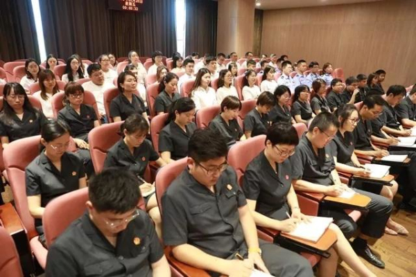 7月1日下午,开发区法院组织全体党员干警参加市法院专题党课教育,进一步明确用习近平新时代中国特色社会主义思想武装头脑这个首要任务,进一步明确法院党员干警的初心和使命,进一步明确完成审判执行任务的工作要求,用实际行动努力践行“让人民群众在每一个司法案件中感受到公平正义”的目标,为新法院履职启动、高质量发展打好坚实的政治思想基础。