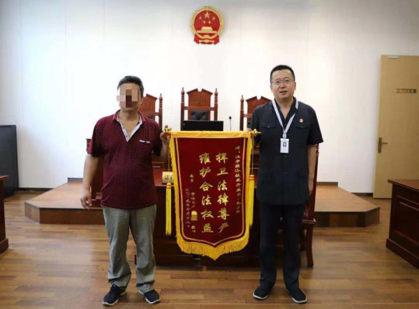 7月22日一早,江宁开发区法院收到了杨某送来的一面印有“捍卫法律尊严 维护合法权益”的锦旗,以表达自己对法官公正高效办案的感谢。