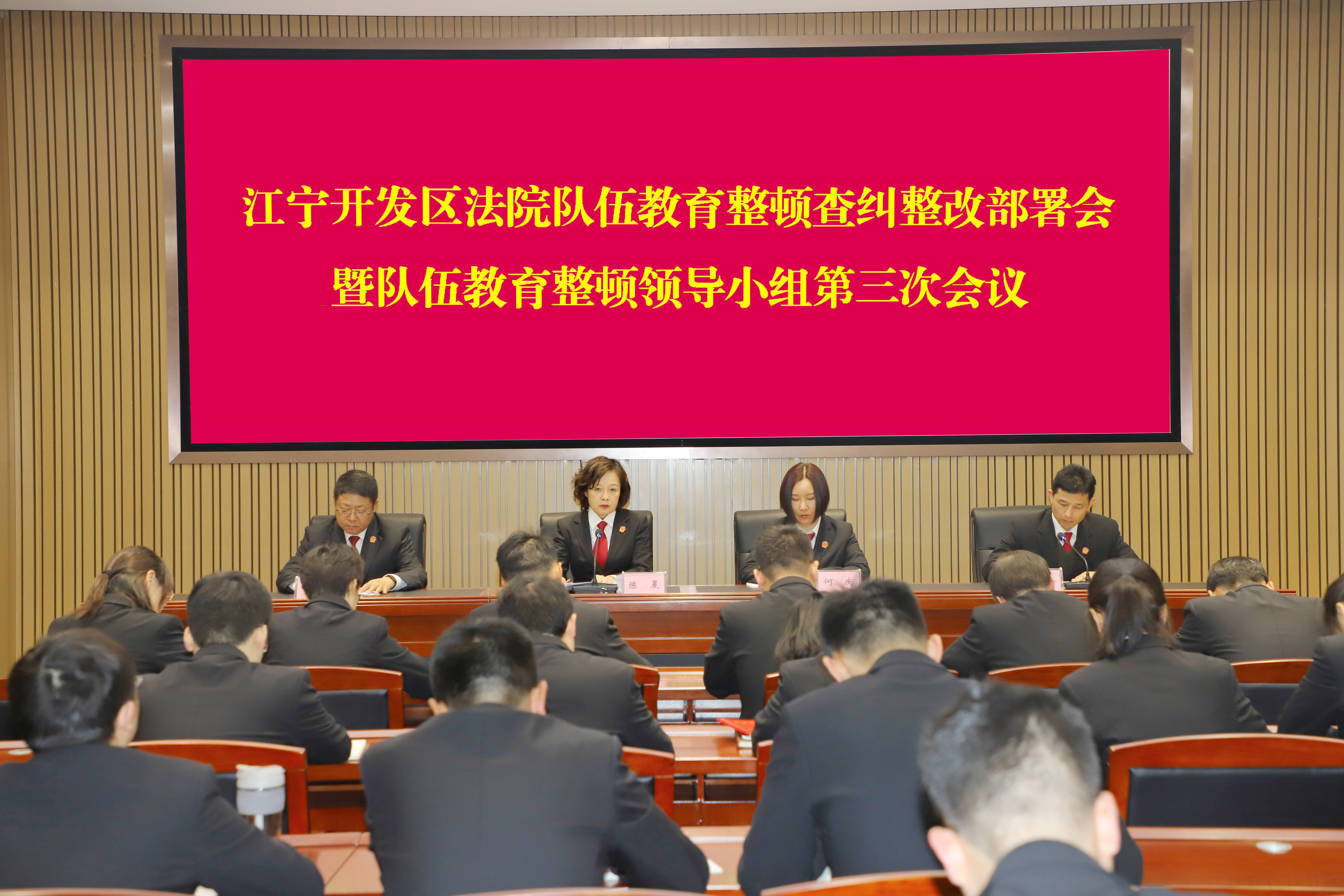 4月19日,江宁开发区法院召开队伍教育整顿查纠整改部署会暨队伍教育整顿领导小组第三次会议,深入贯彻市法院队伍教育整顿查纠整改部署会议精神,回顾总结学习教育环节工作,并对查纠整改环节工作进行动员部署。