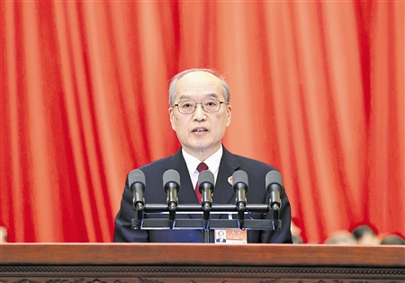 3月8日,十三届全国人大四次会议在北京人民大会堂举行第二次全体会议。最高人民法院院长周强作最高人民法院工作报告。新华社记者 刘 彬 摄