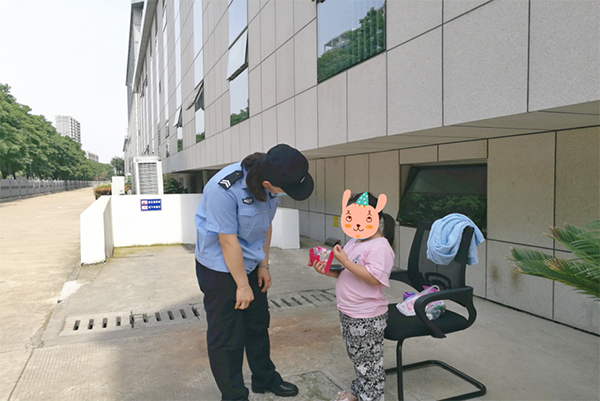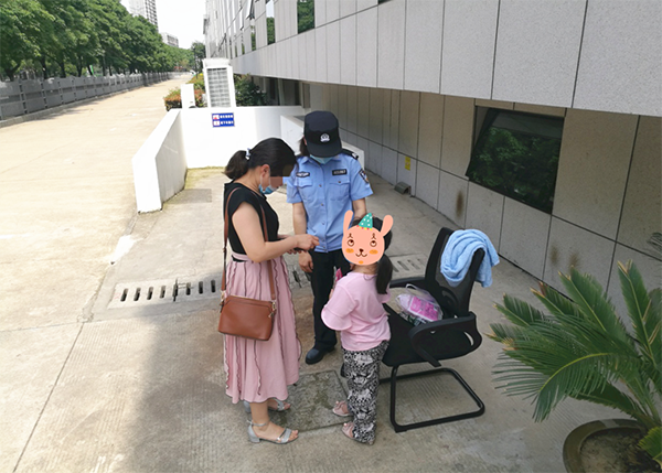小朋友看到穿着警服的大姐姐格外开心,紧紧地拉着妈妈那小手也逐渐松开了,妈妈叮嘱着孩子一定要听警察姐姐的话,便匆匆忙忙地进去办事了。