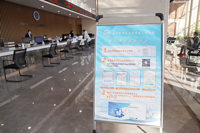为方便当事人诉讼交费和票据获取,实现“让信息多跑路,当事人少跑腿”,2021年7月1日,江宁开发区法院电子票据系统正式启用,当事人可以现场打印或者通过扫描二维码获取电子票据。